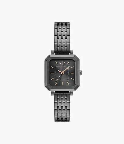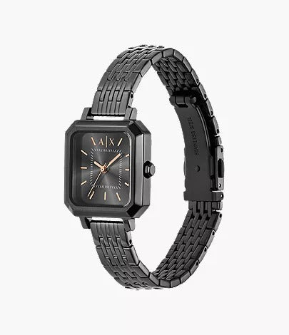 The Armani Exchange Three-Hand Gunmetal Stainless Steel Watch (AX5732) is a sleek and modern timepiece crafted for everyday sophistication. Featuring a 27 mm stainless steel case and bracelet in a bold gunmetal finish, this watch combines durability with style. The black dial enhances readability, while its quartz three-hand movement ensures accurate timekeeping. Protected by mineral crystal and offering 5 ATM water resistance, it’s designed for both style and practicality. The 2 pusher foldover clasp ensures a secure and comfortable fit.