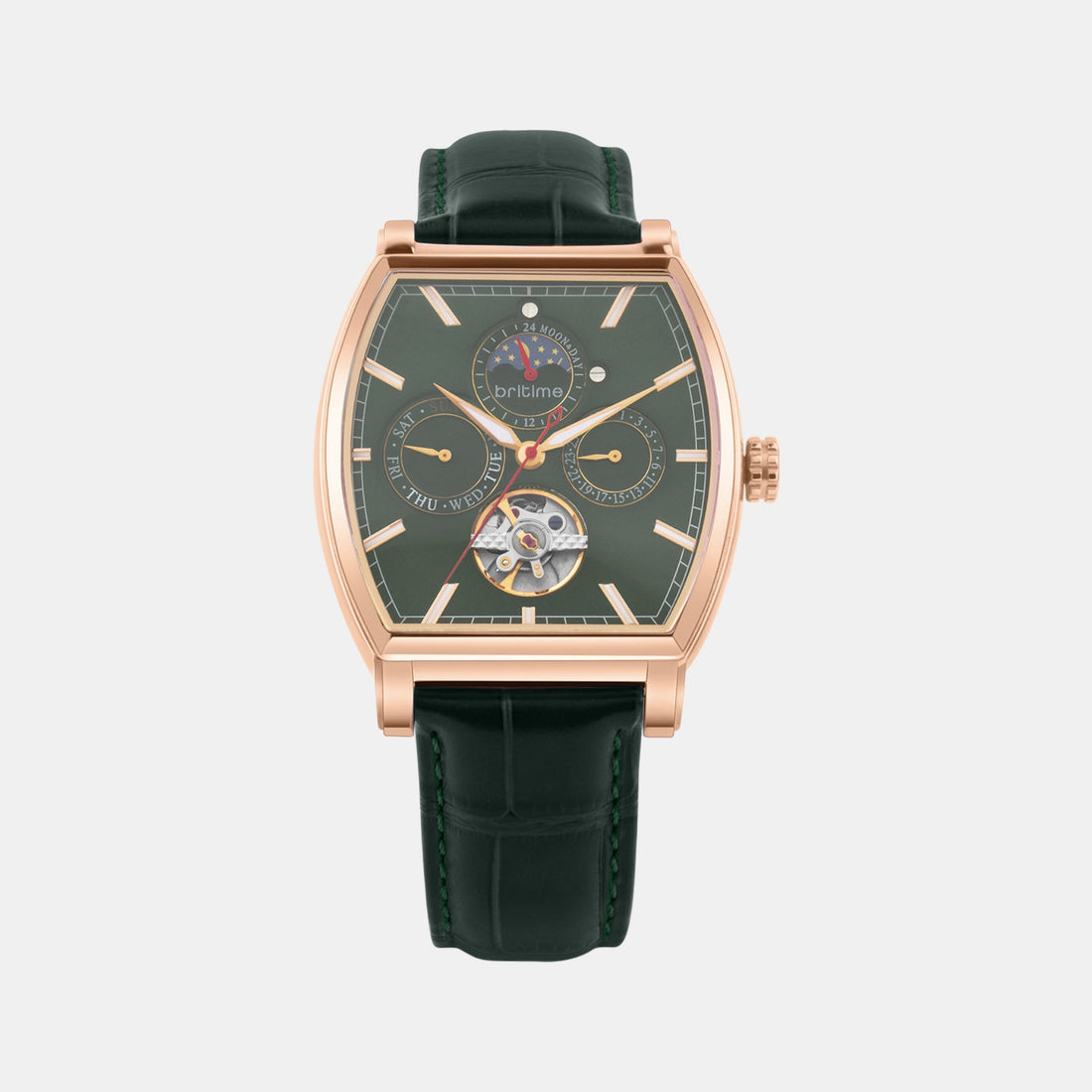 The Britime Men Automatic Green Dial Analog Leather Watch (985-L31412) is a bold and elegant timepiece designed for those who appreciate refined craftsmanship. Featuring an automatic movement, striking green dial, and a stainless steel case, this watch balances durability with sophistication. The sapphire crystal offers enhanced scratch resistance, while the green leather strap with a butterfly clasp ensures both comfort and luxury. With 5 ATM water resistance and a robust case design, this watch is perfect for everyday wear and special occasions.