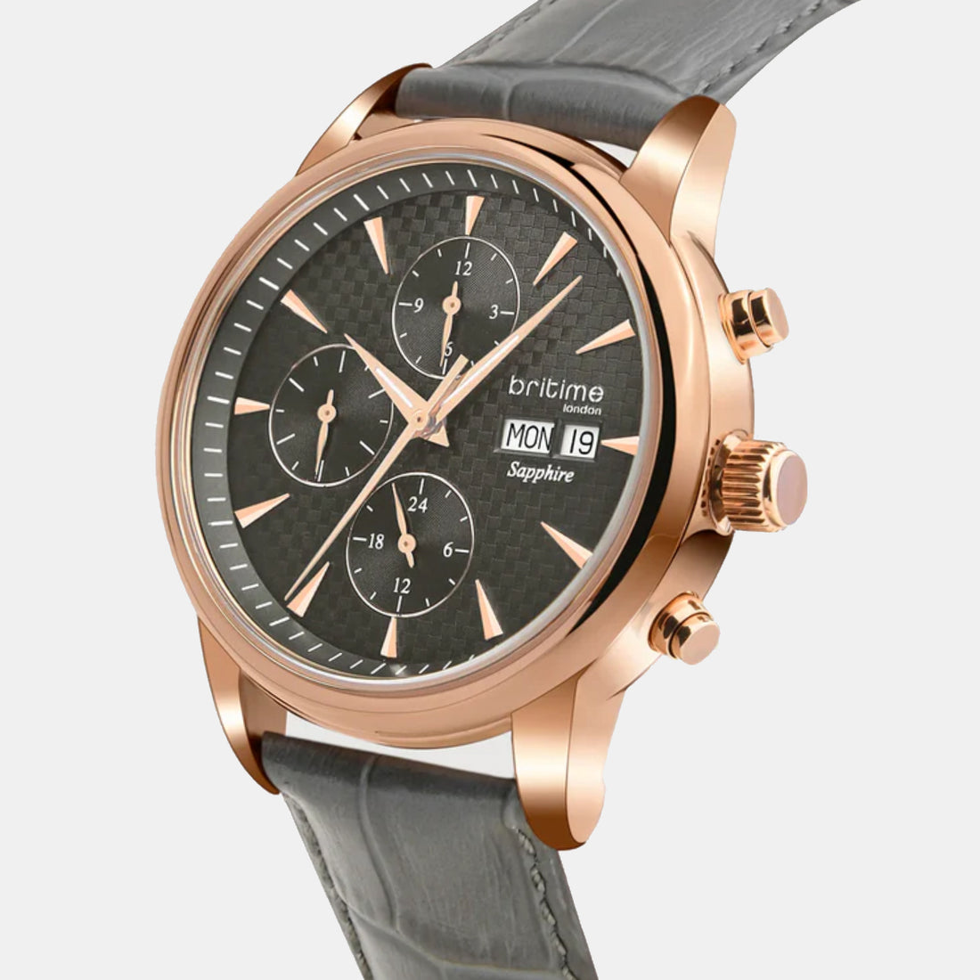 The BRITIME Men Automatic Grey Dial Analog Leather Watch (928-L31509) is a sophisticated timepiece designed for everyday elegance and durability. Featuring an automatic movement and a stainless steel case, it combines precision with style. The grey dial adds a modern touch, while the sapphire glass ensures excellent scratch resistance. The grey leather strap with a butterfly clasp offers comfort and security. With 5 ATM water resistance and a case thickness of 12 mm, this watch is ideal for both casual and formal wear.