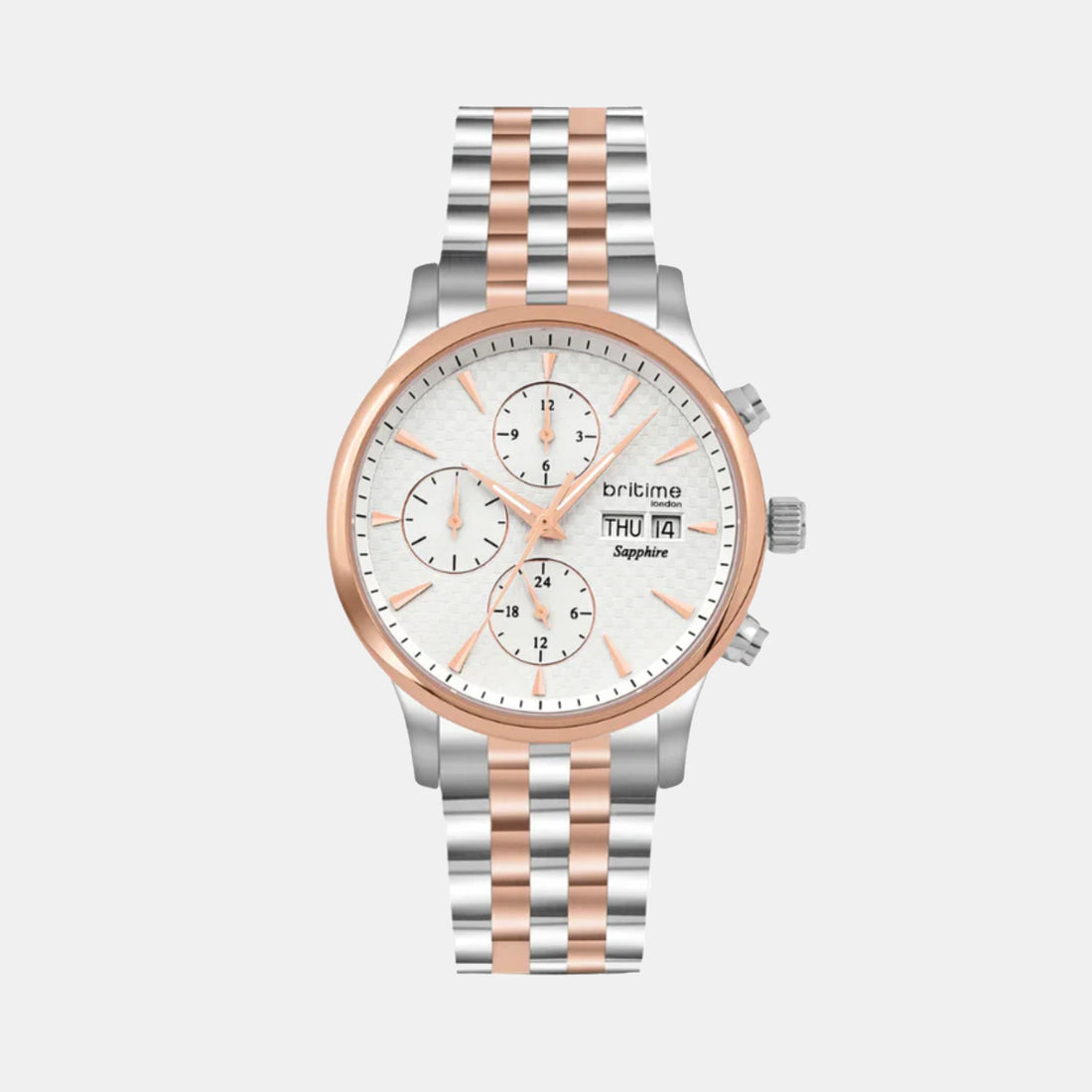 The BRITIME Men Automatic Silver Dial Analog Stainless Steel Watch (928-M30305) is a durable and elegant timepiece designed for everyday wear. Featuring an automatic movement and a stainless steel case, this watch ensures precise timekeeping with a sophisticated silver dial. The sapphire crystal provides excellent scratch resistance, while the two-tone stainless steel strap with a butterfly clasp offers both style and comfort. With 5 ATM water resistance and a case thickness of 12 mm, this watch is perfect for casual and formal occasions alike.