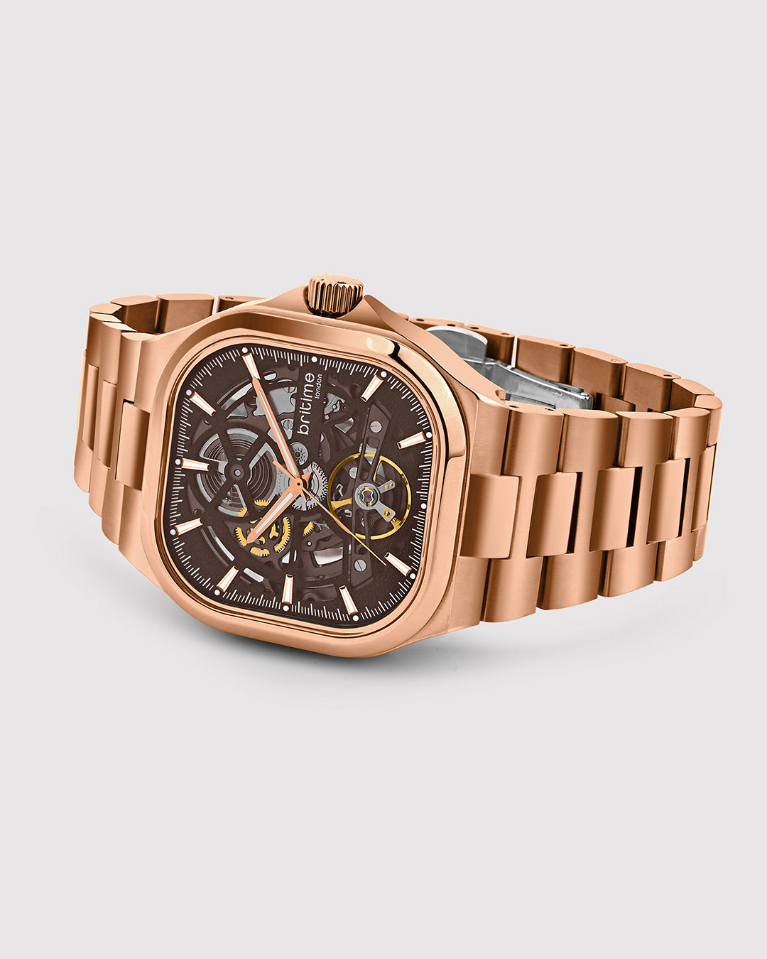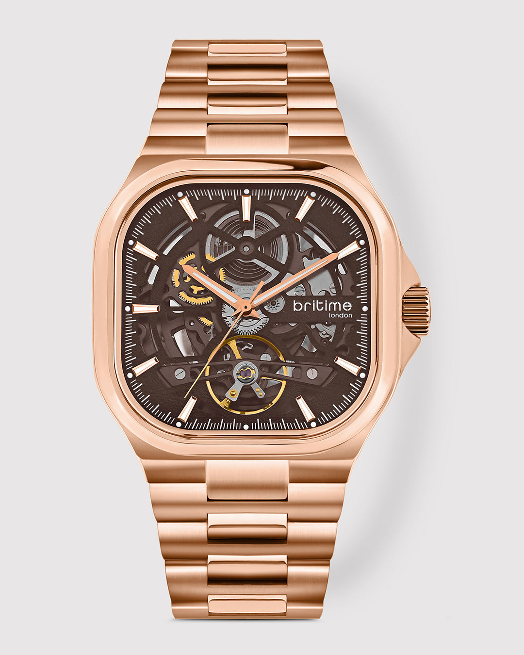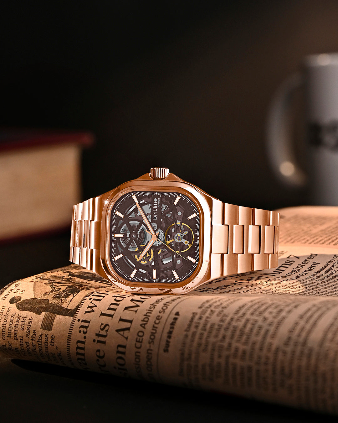 The Monarch Men’s Automatic Analog Steel Watch (969-M30603) is a sophisticated timepiece designed for men who appreciate bold colour tones paired with refined craftsmanship. Featuring a rich brown dial complemented by a rose gold-tone steel bracelet, this watch delivers a striking yet elegant presence suitable for both formal and statement wear.