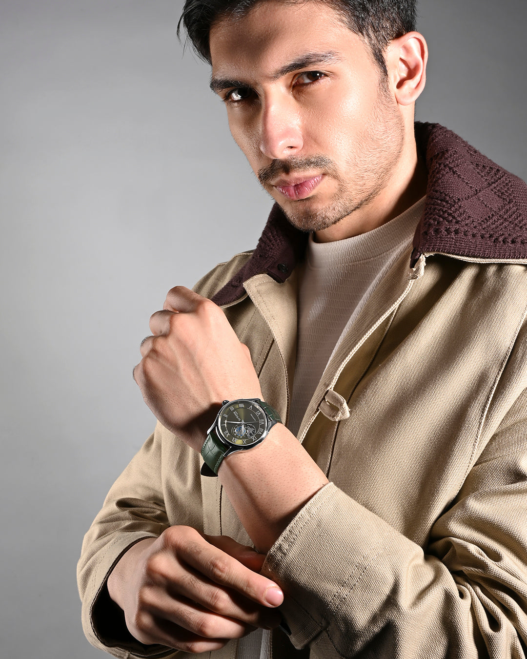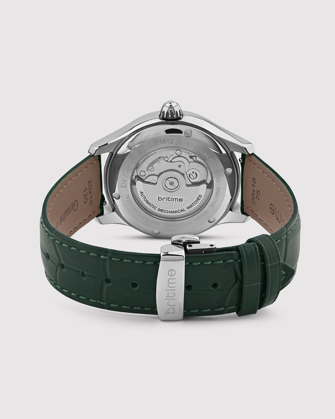 The Britime Windsor Men’s Automatic Analog Leather Watch (318-L11412) is a refined expression of classic elegance paired with reliable mechanical craftsmanship. Designed for men who appreciate timeless style, this watch features a rich green dial complemented by a matching leather strap, making it ideal for both formal settings and everyday wear.