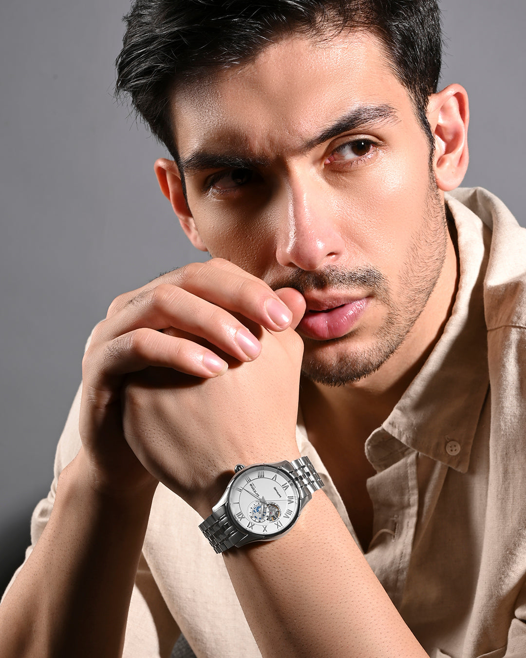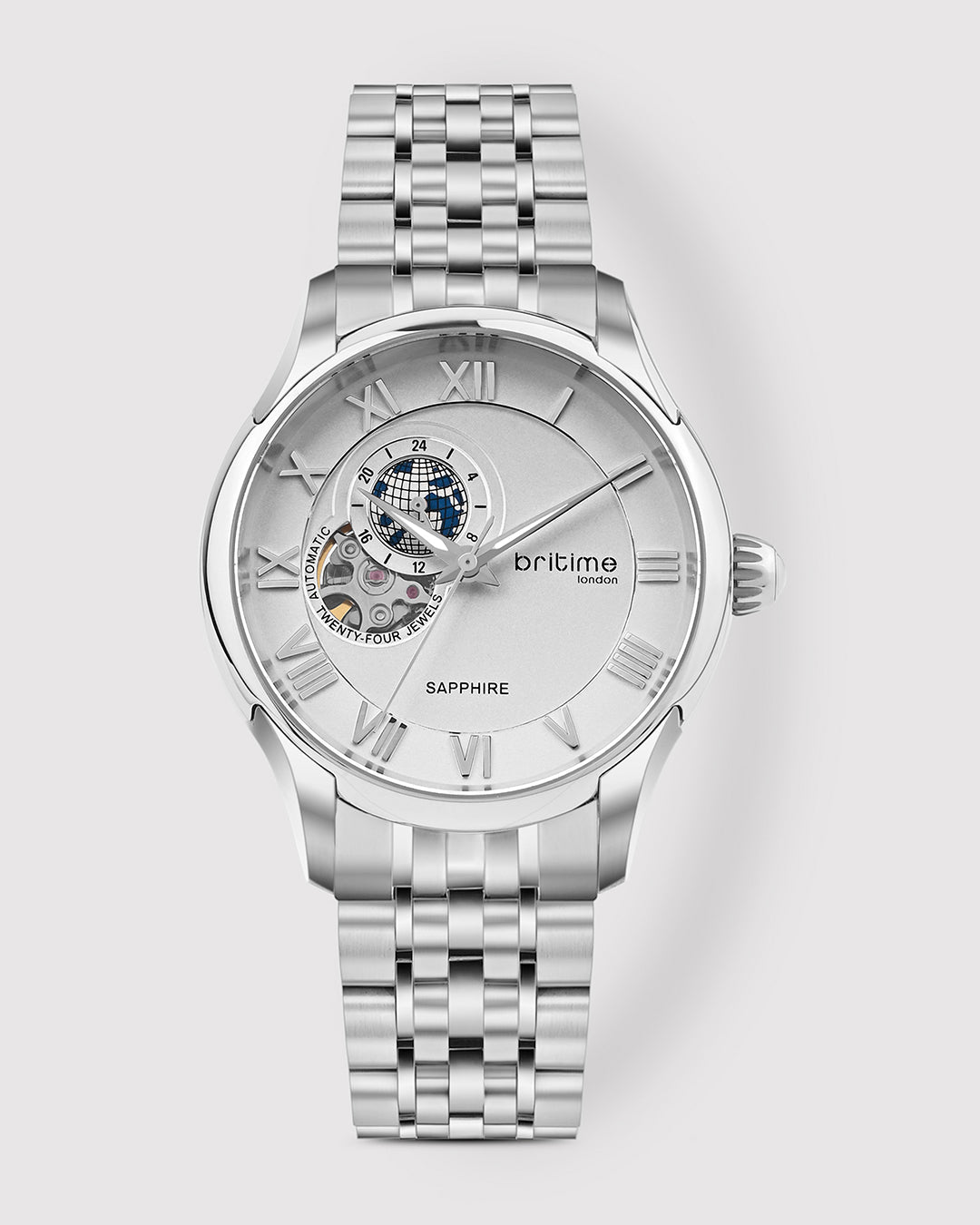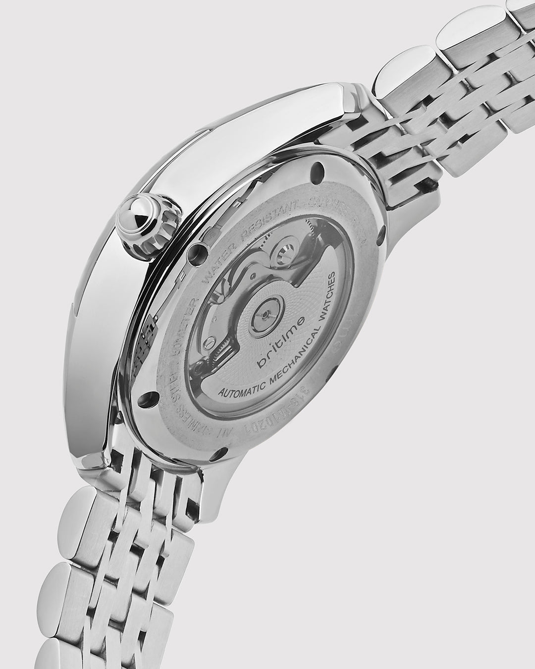 Protected by scratch-resistant sapphire glass, the Windsor is powered by a dependable automatic movement and features a slim 9 mm case thickness for exceptional comfort. With 5 ATM water resistance and a secure butterfly clasp, this Britime timepiece delivers durability, sophistication, and everyday practicality.