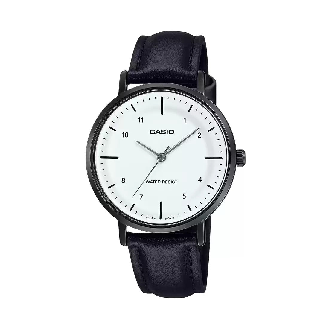 The Casio Enticer Ladies LTP-VT03BL-7BDF blends minimalist design with graceful sophistication. Featuring a silver-white dial, slim black hour markers, and a sleek leather band, this timepiece adds a touch of refined charm to both everyday and formal wear. Light, comfortable, and timelessly elegant.