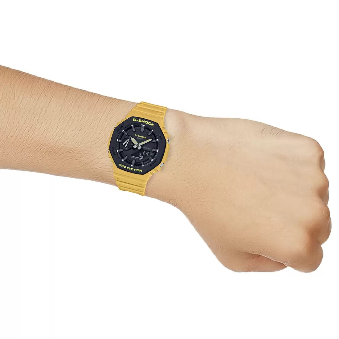 Stand out in bold style with the G-SHOCK GA-2110SU-9ADR, a rugged and vibrant timepiece featuring G-SHOCK’s signature toughness. Dressed in a striking yellow hue with Carbon Core Guard structure, this analog-digital watch delivers shock resistance, 200M water resistance, and essential features like world time, stopwatch, and countdown timer—making it perfect for both adventure and everyday wear.