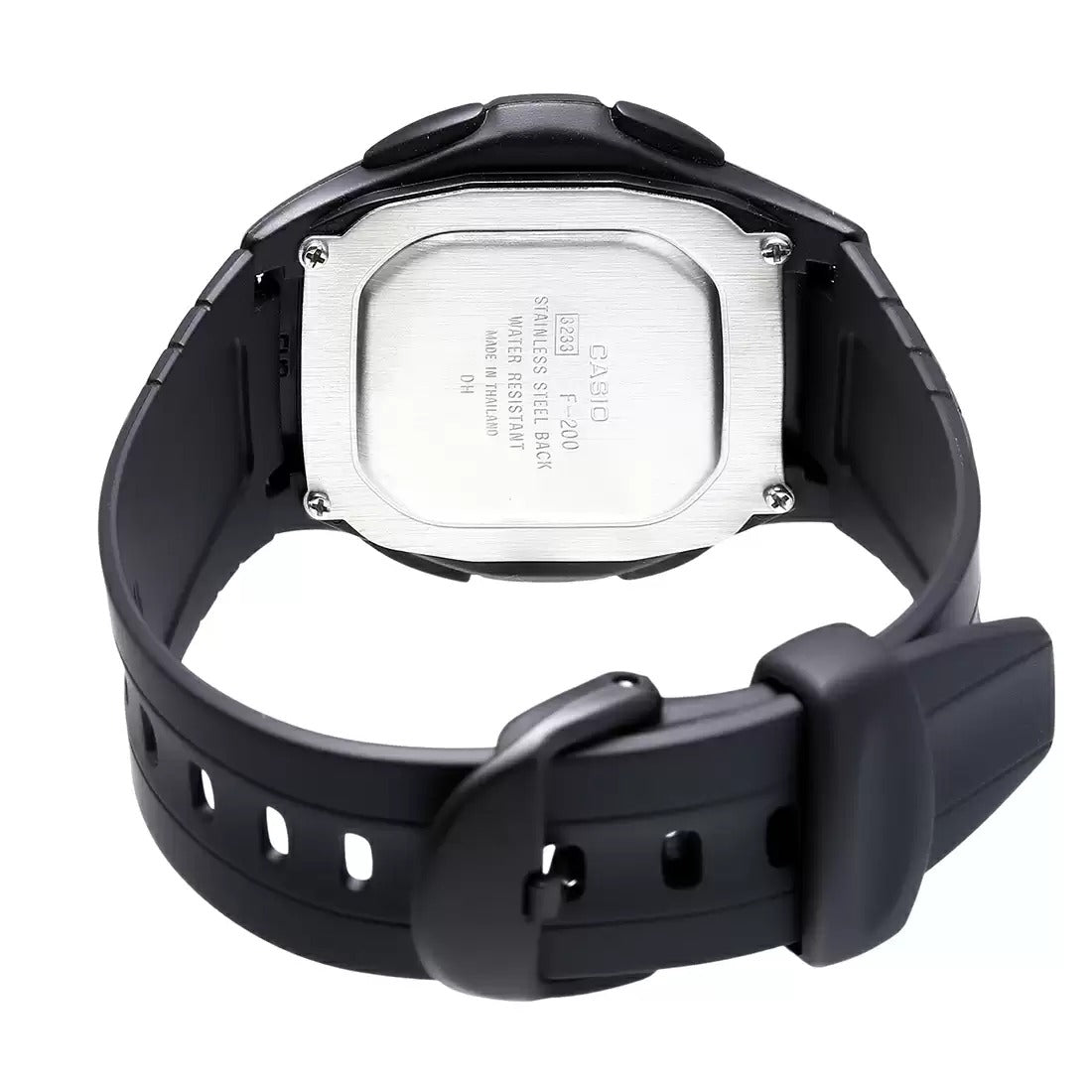 The YOUTH F-200W-1AUDF - D027 is a sleek black digital unisex watch featuring a dual dial design, countdown timer, and auto calendar. With a 10-year battery life and water resistance, it's perfect for everyday wear. Additional features include an LED light, alarms, and an hourly time signal.