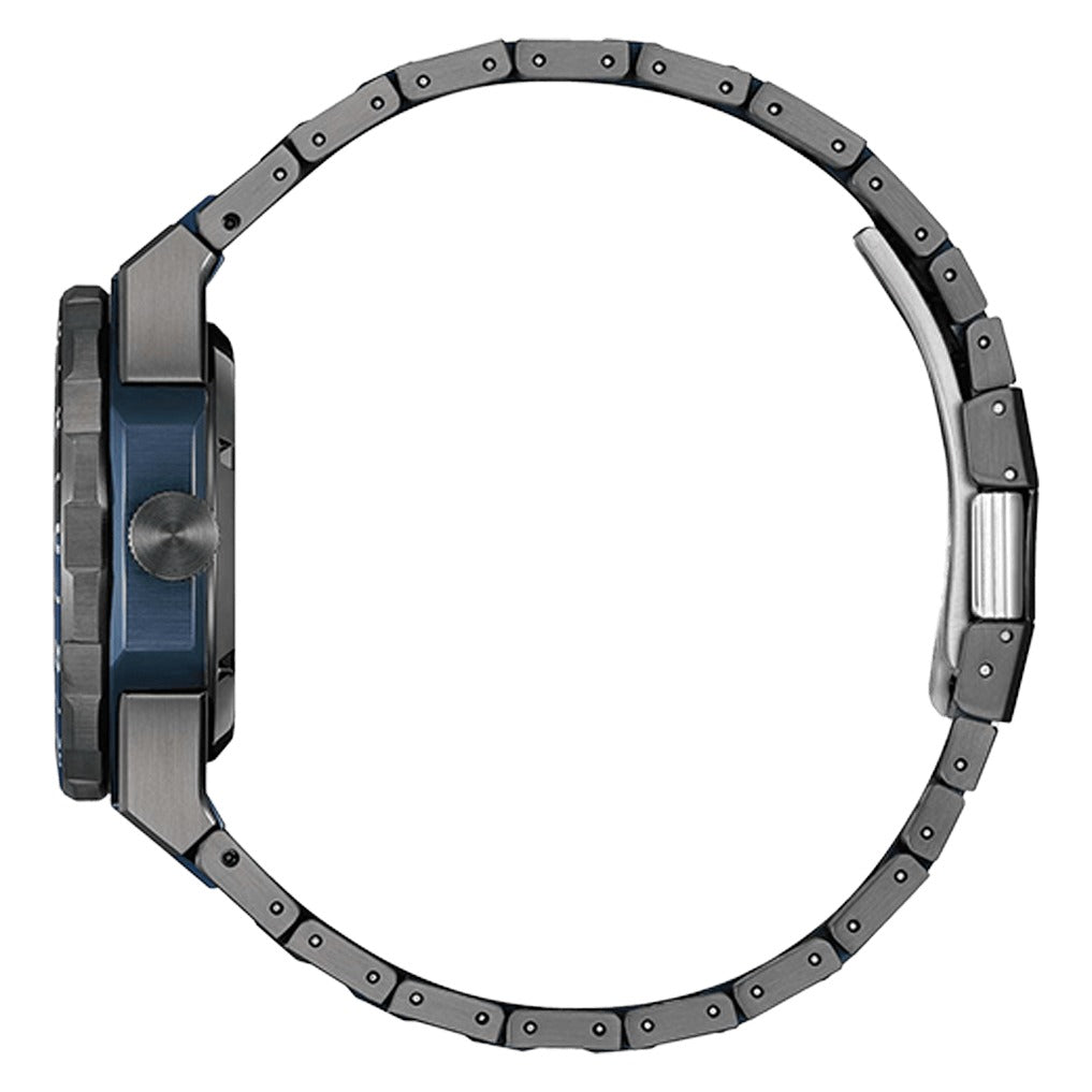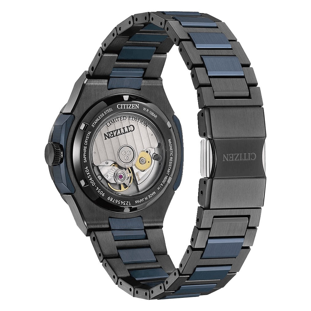 The Citizen Series8 880 GMT Automatic — 41mm (NB6036-52N) is crafted for modern explorers who demand performance, refinement, and versatility. Functional, sporty, and boldly contemporary, this timepiece is designed for both daily wear and global travel. Its striking black and blue two-tone stainless steel case features a bi-directional bezel, showcasing Citizen’s advanced finishing techniques and distinctive aesthetic.