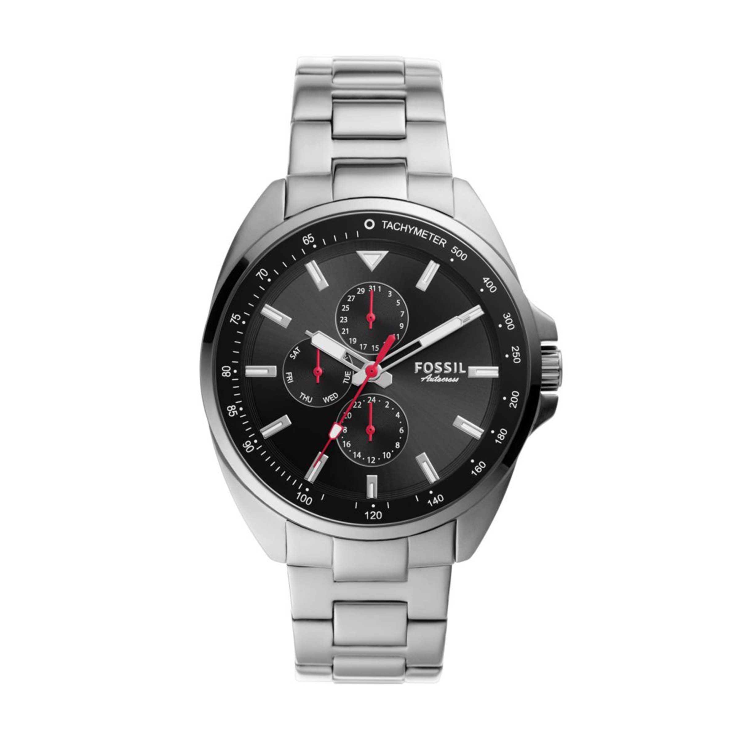 This 44mm Autocross features a black sunray dial, multifunction movement and a silver-tone stainless steel bracelet. |