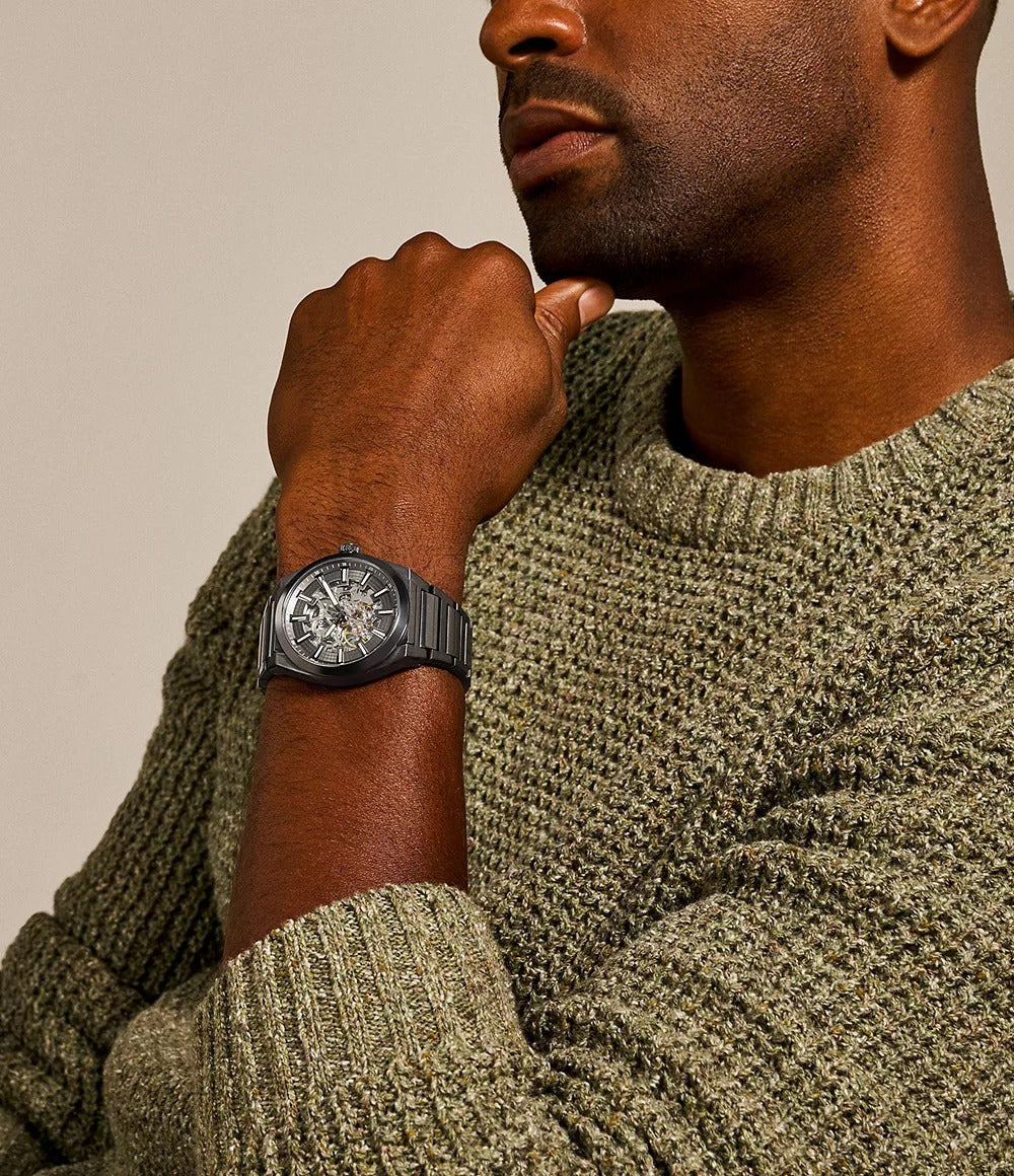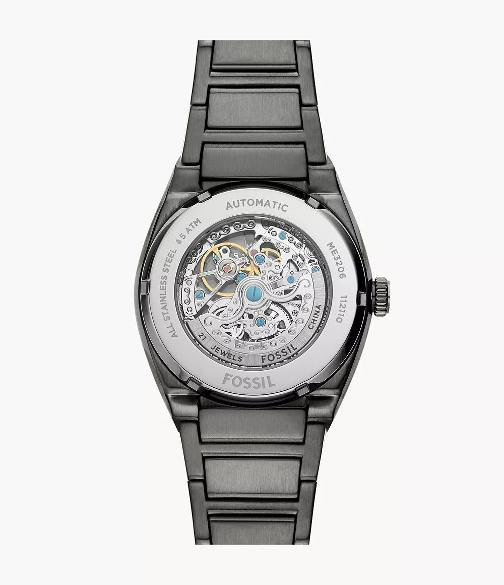 The Fossil Everett Automatic Smoke Stainless Steel Watch - ME3206 embodies timeless sophistication with a modern industrial edge. Featuring a 42mm smoke stainless-steel case and bracelet, this watch showcases a striking grey matte sunray-textured dial. The automatic three-hand movement delivers precision without the need for a battery, powered instead by your natural wrist motion. Its durable mineral crystal and 5 ATM water resistance ensure it’s as functional as it is stylish — a perfect everyday companion for the modern gentleman.