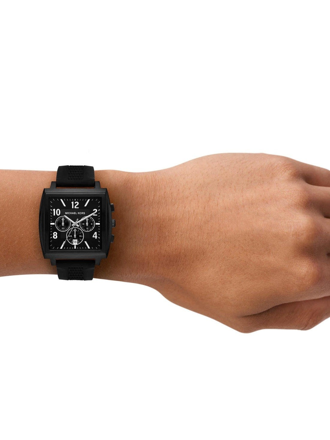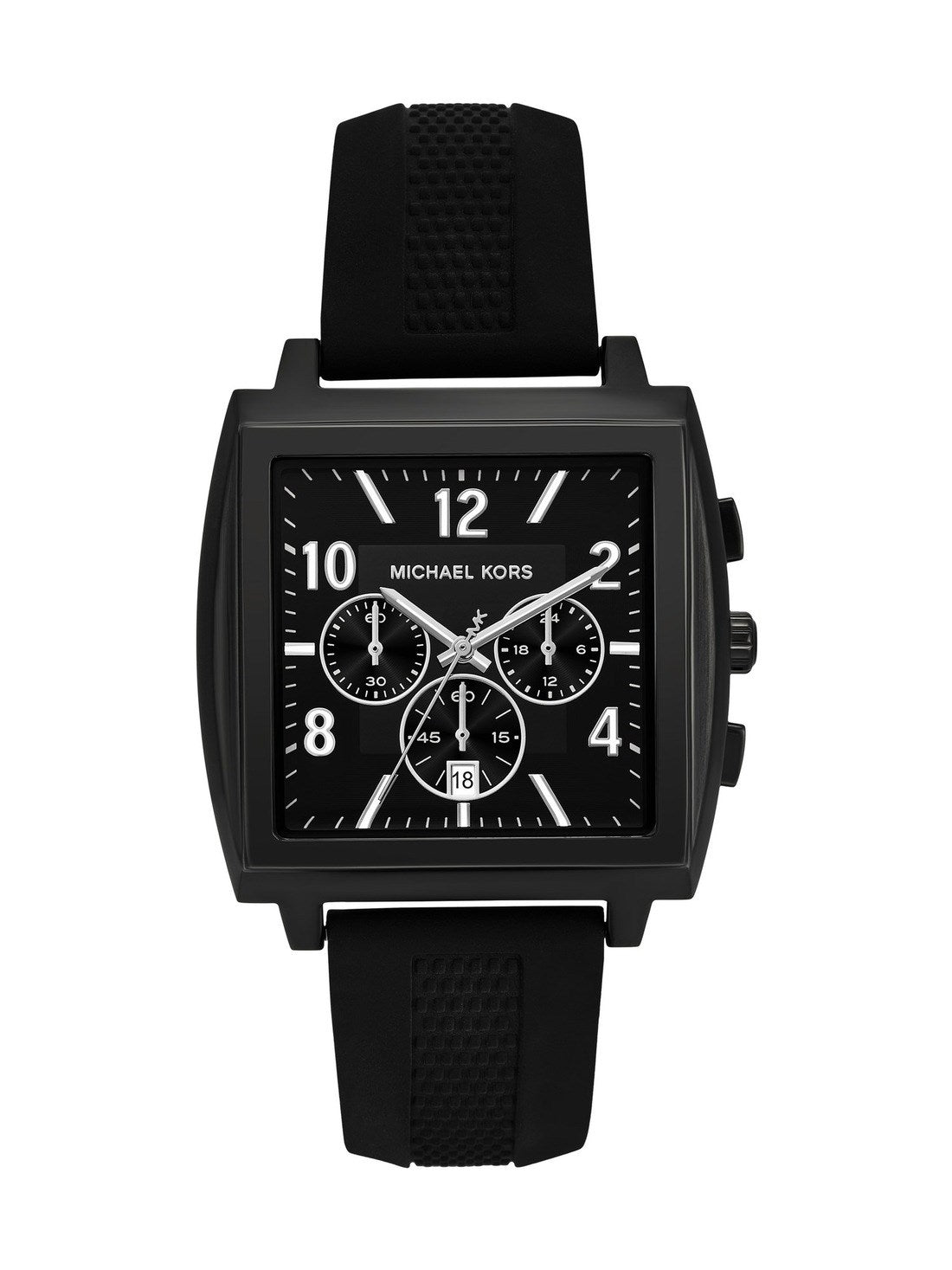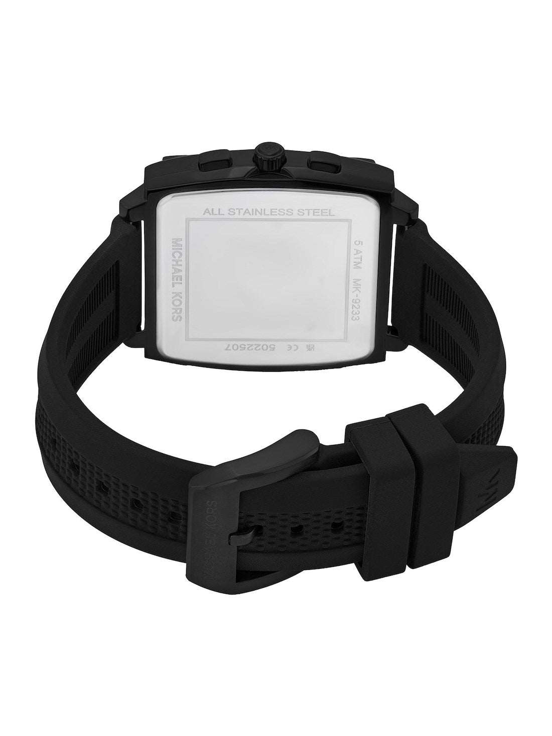 The Michael Kors Rhys Black Watch (MK9233) blends bold styling with modern performance. Designed with a striking square silhouette, this men’s timepiece features a tonal black dial paired with a durable textured black silicone strap. Powered by a reliable quartz movement and offering 5 ATM water resistance, it delivers both style and function for everyday casual wear. Its chronograph-inspired aesthetic adds a sporty edge, making it a standout accessory for any occasion.