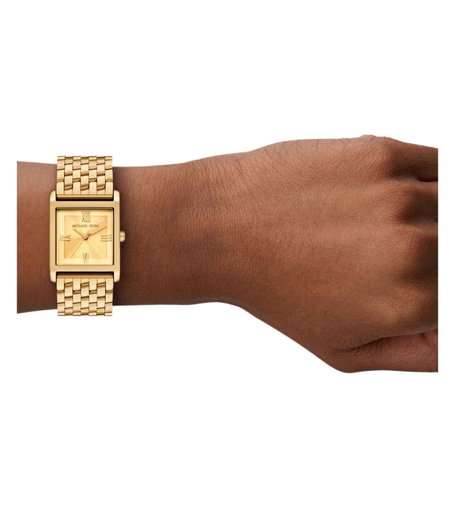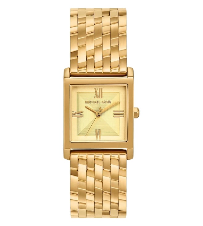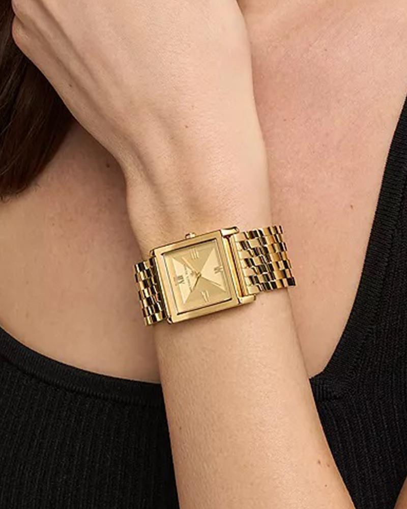 The Michael Kors Georgie Quartz Women’s Watch (MK4934) showcases a bold yet elegant aesthetic with its modern square design. Featuring a 27 mm stainless steel case and a matching gold-tone stainless steel bracelet, this timepiece delivers a luxurious look suitable for both daily wear and special occasions. Powered by a precise quartz movement and equipped with 50 m water resistance, it offers a blend of style, reliability, and everyday durability.