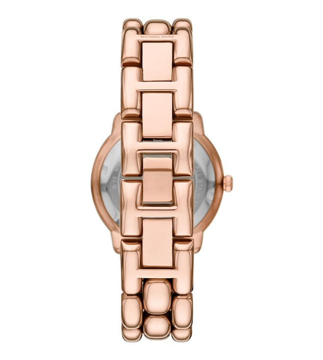 The Michael Kors Phoebe Quartz Women’s Watch (MK4962) showcases elegant sophistication with its refined rose-gold aesthetic. Featuring a 36 mm stainless steel case and a matching rose-gold stainless steel bracelet, this timepiece delivers a timeless and feminine appeal. The rose-gold dial enhances its luxurious look, while the precise quartz movement ensures reliable timekeeping with hour, minute, and second functions. With durable mineral glass and 50 meters of water resistance, the Phoebe MK4962 is designed for everyday elegance and lasting style.