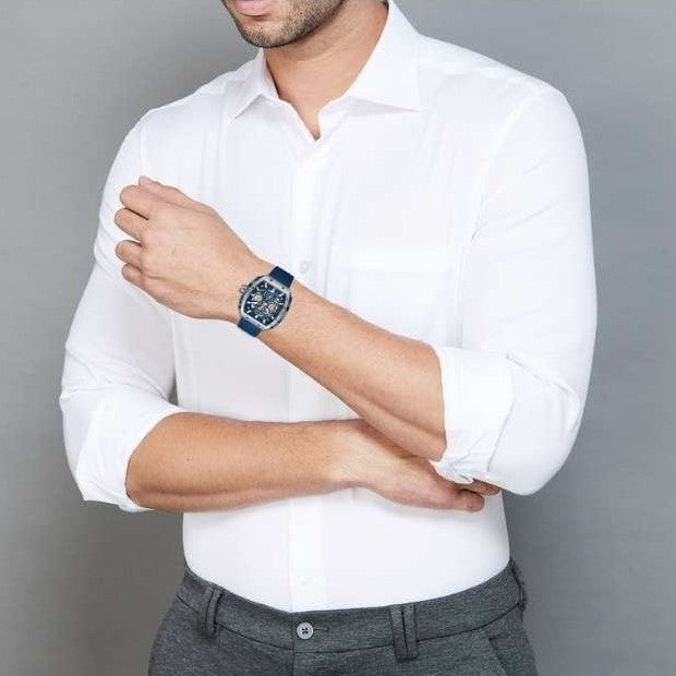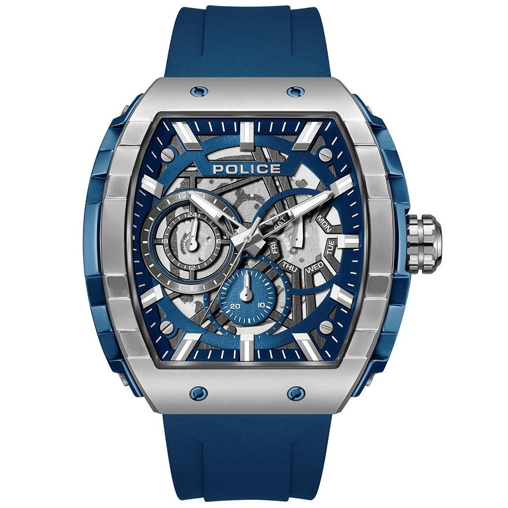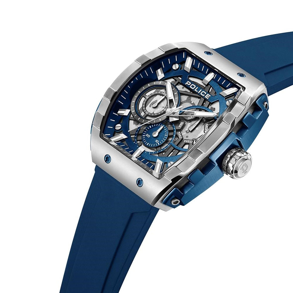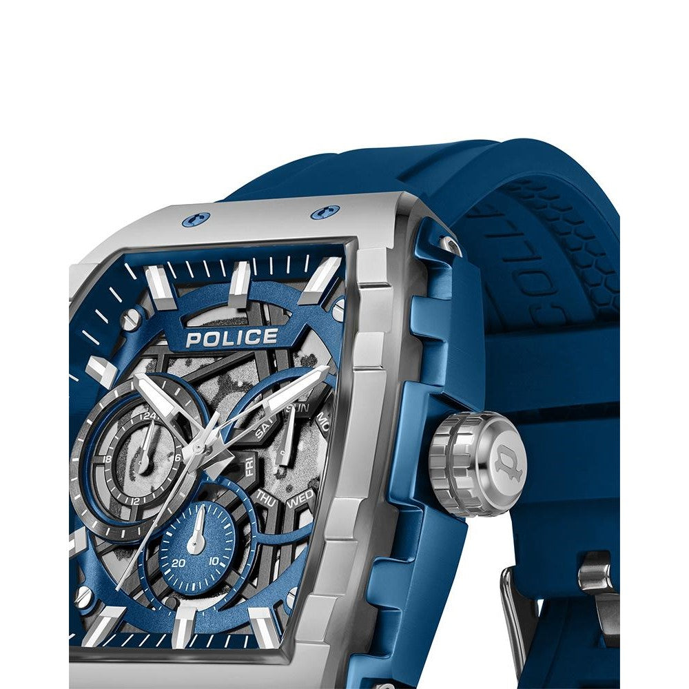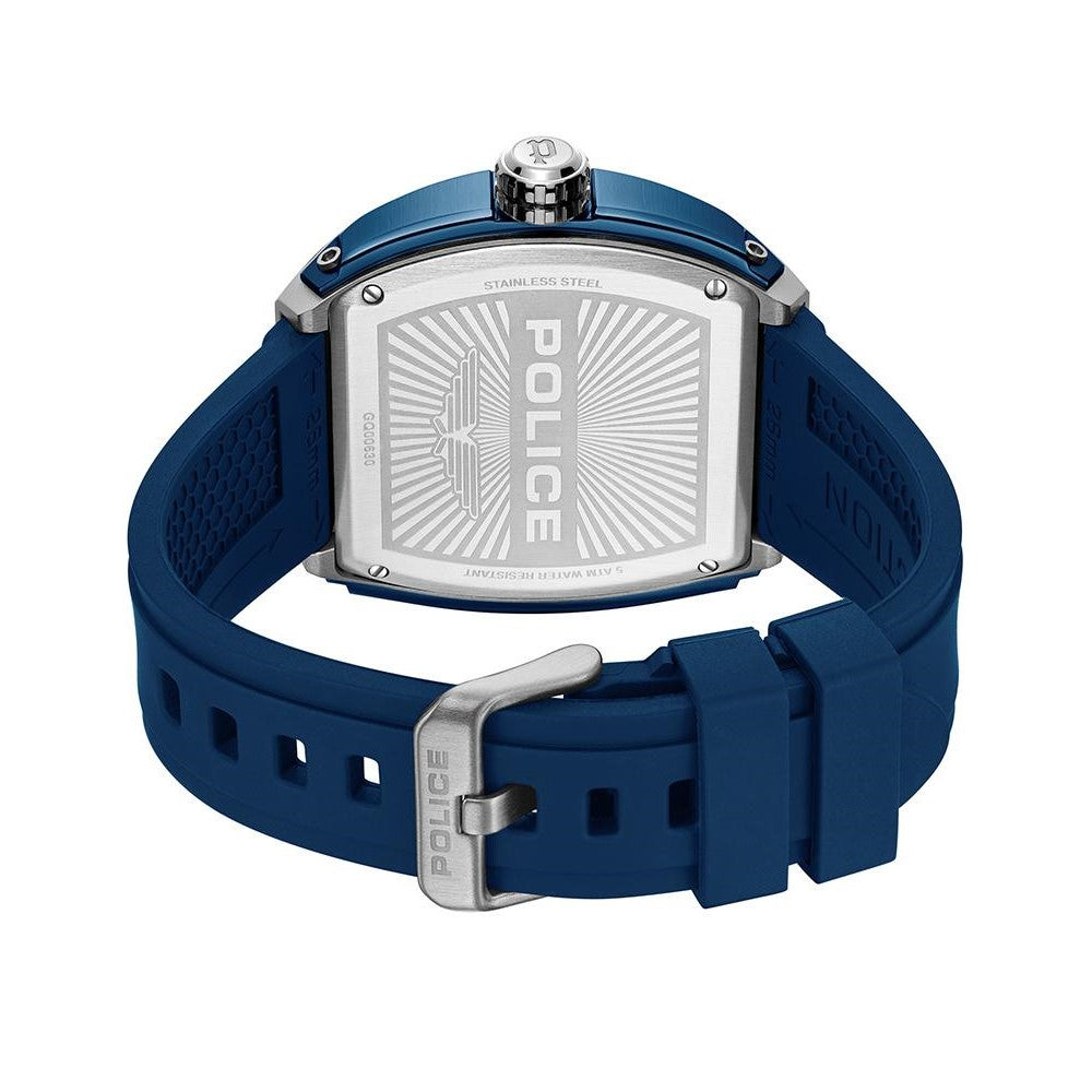 The Police Quartz Multifunction Blue Dial Men’s Watch (PLPEWGQ0063002) pairs a bold contemporary aesthetic with everyday practicality. Featuring a distinctive tonneau-shaped dial, this multifunction timepiece includes three sub-dials for day, date, and 24-hour indication—designed to keep you on schedule at a glance. Glow-in-the-dark hour markers and clean three-hand time display offer enhanced visibility both day and night.