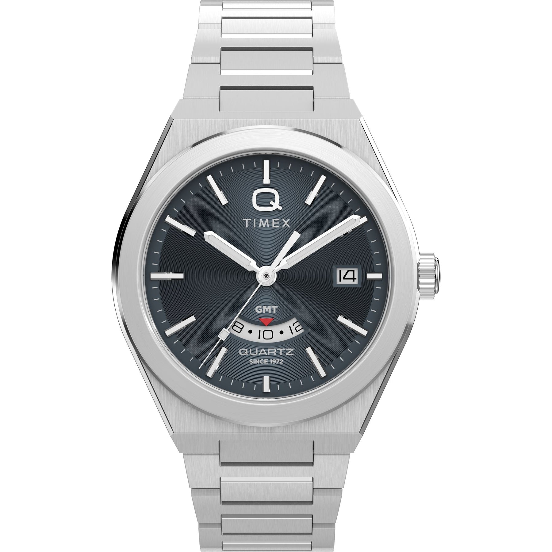Channeling the bold designs and decadent glamour that filled the scene in ‘70s West Hollywood, the Q Timex® Continental GMT brings refinement to our beloved Q Timex collection with a new streamlined 39mm brushed stainless-steel case with polished edges and a sleek GMT function featuring a discreet display at 6 o’clock. The simple black or silver-tone dial features a radial texture and a clean presentation that’s effortlessly cool, highlighted by faceted hour markers, luminant hands for enhanced visibility in the dark, and a glanceable date window beside the 3rd hour marker. Completing the truly ‘70s style look is a tapered and integrated brushed stainless-steel bracelet.
