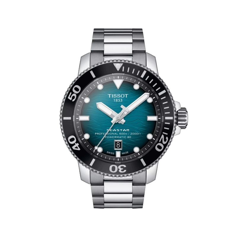 Wherever you go and whatever adventure you find yourself on, you’ll find balance with the Seastar 2000 Professional Powermatic 80 on your wrist. This is a highly technical, assertive watch that’s brimming with easy confidence, whether you take it deep into the urban jungle, or hundreds of metres below the surface of the sea. With its chic, stylish profile, it’s a versatile piece you can wear every day. But with its muscular architecture, up to 60 bar (600 m / 2000 ft) of water resistance and ISO 6425 (2018) diver’s watch certification, it’s the tool watch you can rely on when you need it most, too. Specifications include a uni-directional rotating bezel with a ceramic bezel insert, a screw-down crown, an automatic helium escape valve, and a waterproof black rubber and blue fabric strap. A black or gradient blue to black dial with a wave motif is the symbol of its impeccable underwater credentials. So just where will you go?
