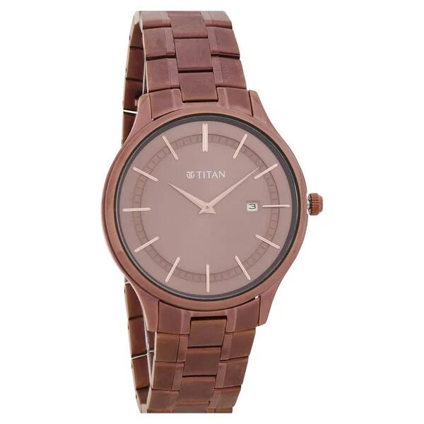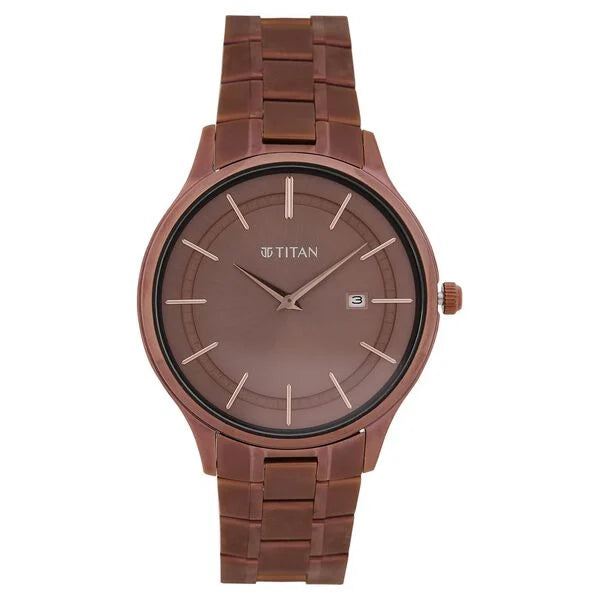 Titan Classique Slimline Brown Dial Analog with Day and Date Stainless Steel Strap Watch for Men 90142qm05